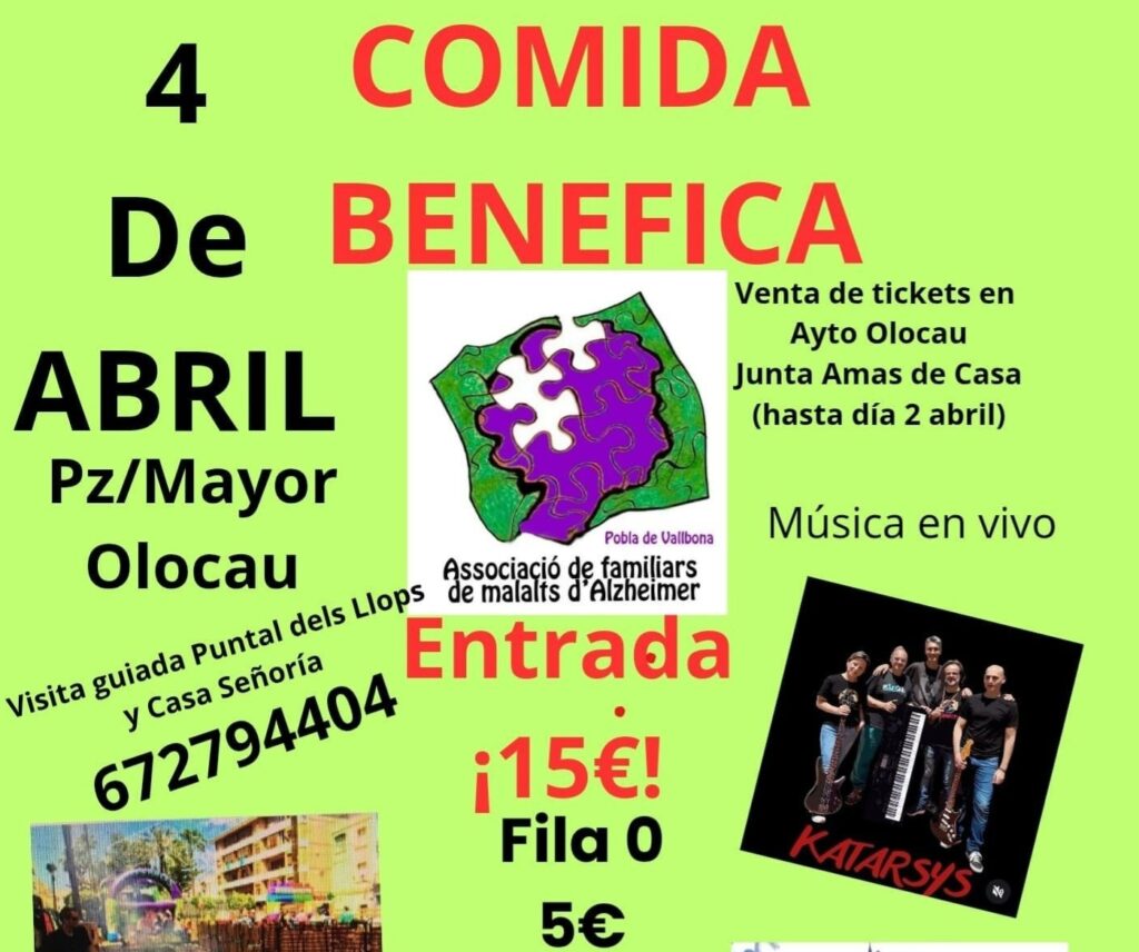 Organitza l’associació Amas de Casa de Olocau amb la col·laboració de l’Ajuntament a través de la seua Regidoria d’Igualtat i Dona, l’Associació de Veïns de Pedralvilla, el grup de música local Katarsys i el nostre veí Juan José Navarro. Els tiquets es poden adquirir fins al 2 d’abril.